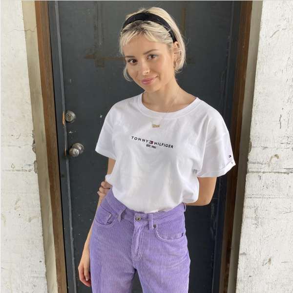 Nina Nesbitt a purtat un tricou alb cu o croială lejeră din colecția TOMMY HILFIGER.